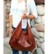 Handbag made of natural grain leather. Practical and universal, it fits any styling. You can carry it freely on the shoulder as well as in the hand. On the front there is a practical pocket, fastened with a magnet. The semi-circular, baggy design makes the bag very original and stylish. The center of the bag is also fastened with a magnet