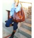 Leather tote Bag, Leather brown cognac oversized handbag, 2-in-1 model with a cosmetic bag