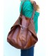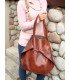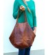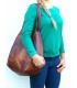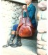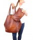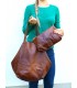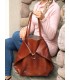 Leather Cognac 2in1 bag with a cosmetic bag,oversize handbag