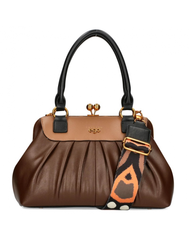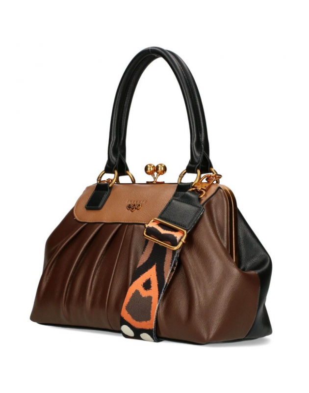 Ego Torebka Kuferek DWUSTRONNY z motylem na bigiel 2 paski Eko Skóra CZEKOLADA