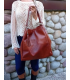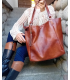 Torebka Skórzana Shopper Aktówka Worek z frędzlem Vera Pelle Model 2w1 BRĄZOWO-RUDA