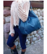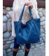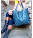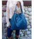 Torebka Skórzana Shopper Aktówka Worek z frędzlem Vera Pelle Model 2w1 INDYGO
