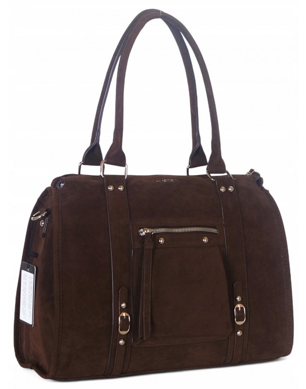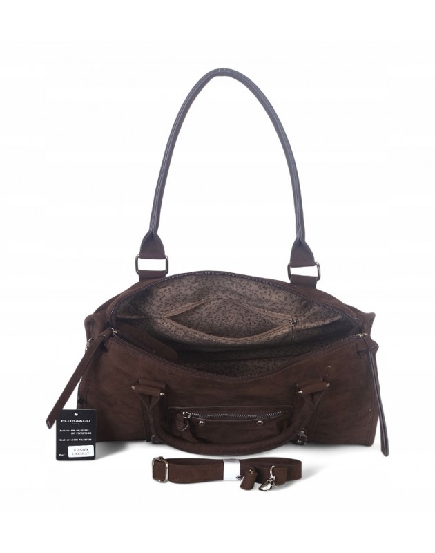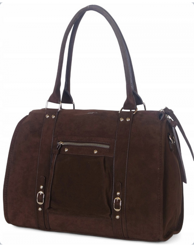 Flora & Co Przepiękny Kuferek eko ZAMSZ CZEKOLADOWY z dodatkowym paskiem