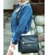 Skórzana torebka listonoszka z kieszenią i frędzlem czarna