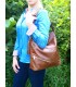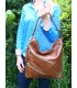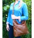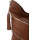 Skórzana torebka/worek z blaszką i frędzlem Vera Pelle Brąz przecierany