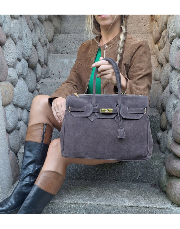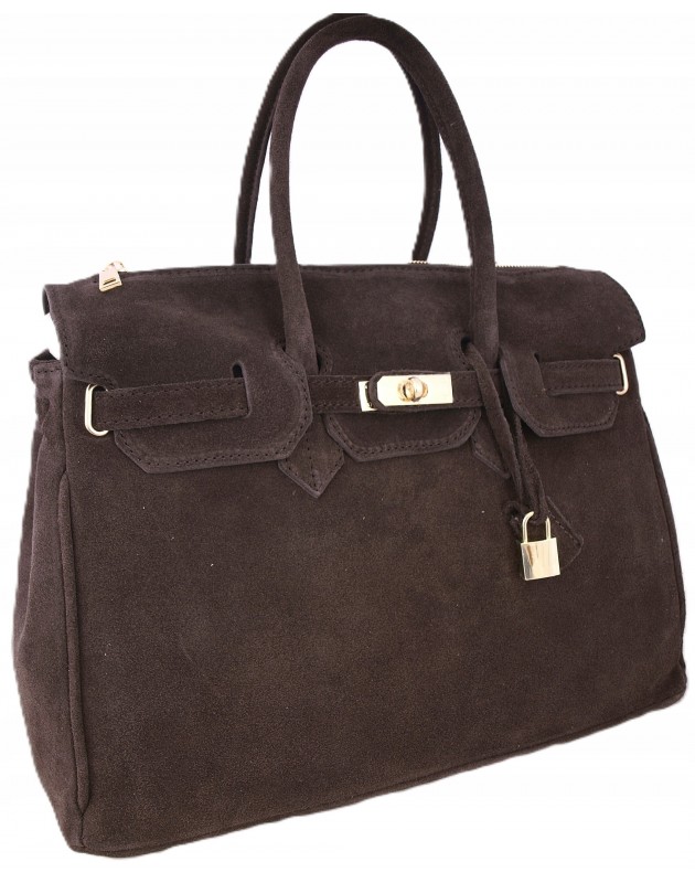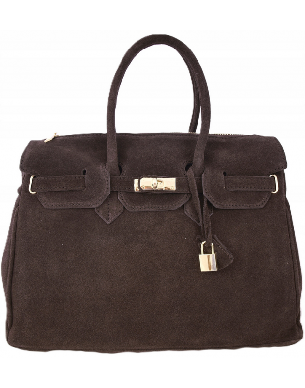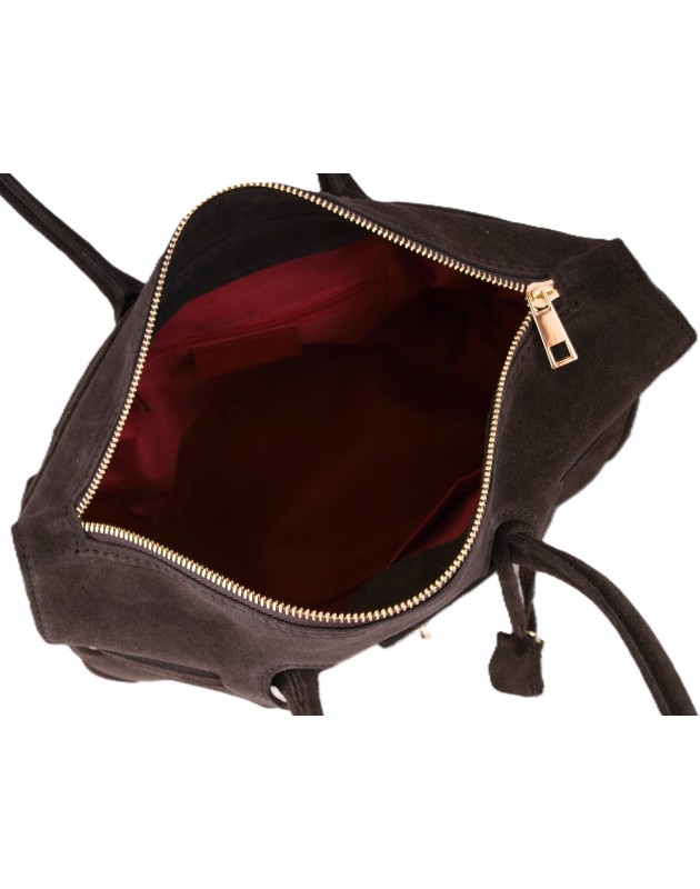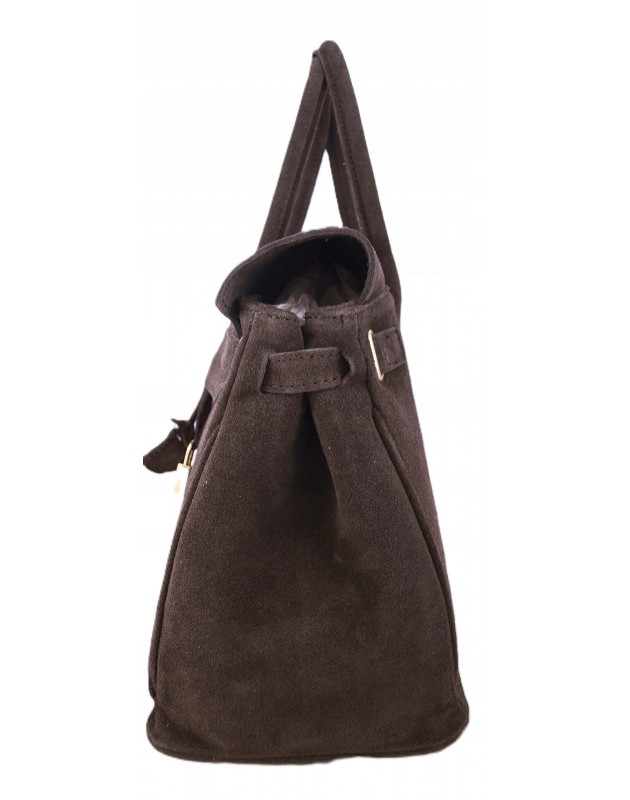 Torebka Włoska CZEKOLADOWA Kuferek SKÓRA ZAMSZ NATURALNY Vera Pelle +pasek