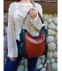 • Skórzana kasztanowa torebka 2w1 z kosmetyczką