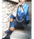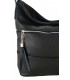 Skórzana czarna torebka/worek z blaszką i frędzlem