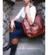 • Torebka Skórzana Worek Boho frędzle SKÓRA NATURALA KASZTANOWY