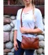 Skórzana Torebka Worek Listonoszka 2w1 z kosmetyczką Brązowo-rudy